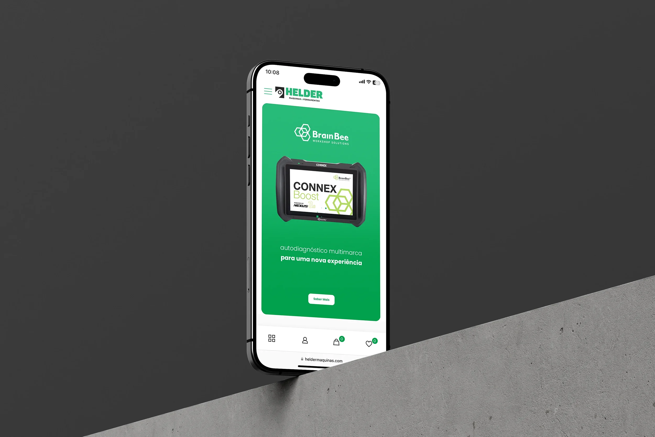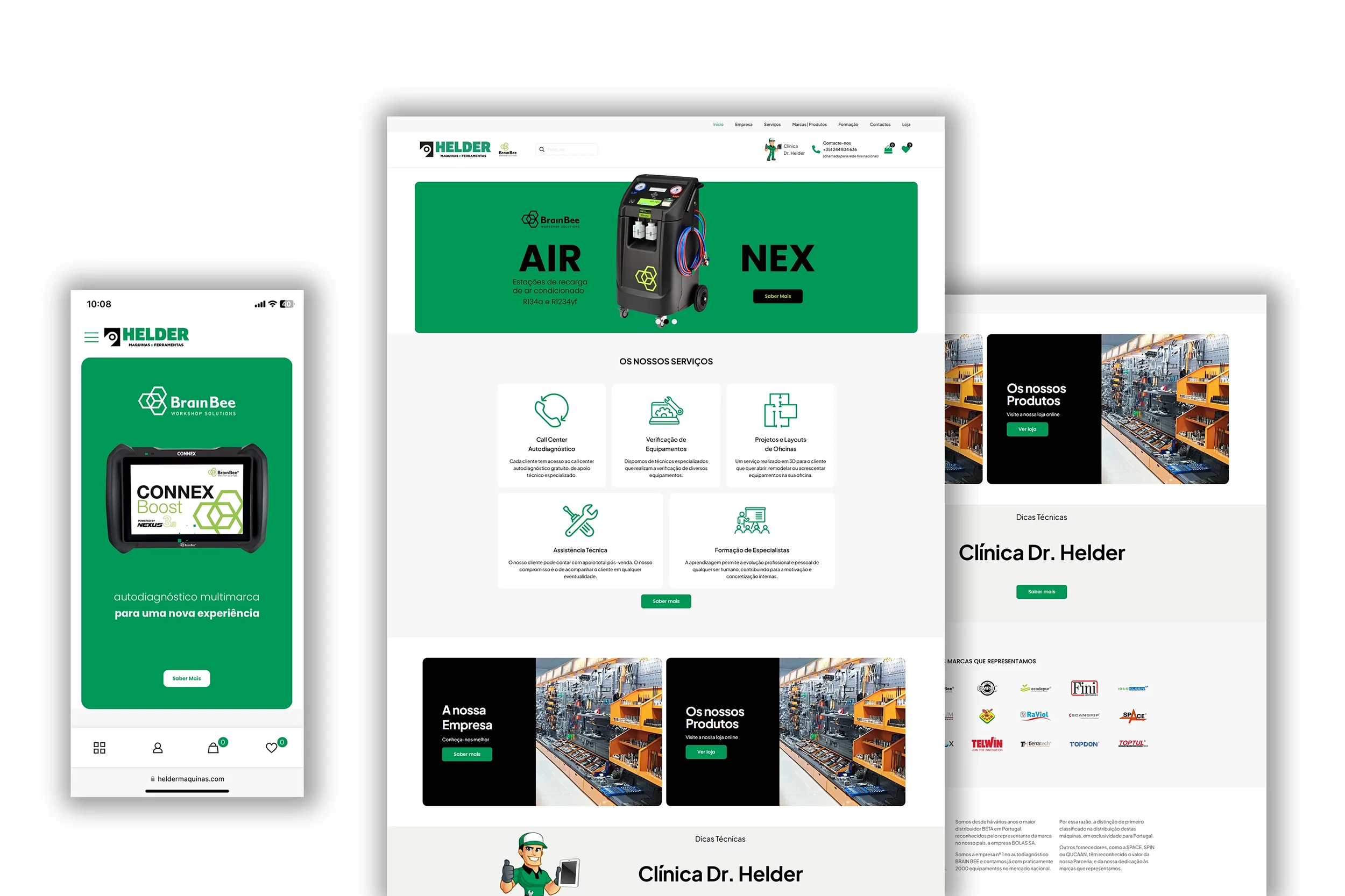 Helder Máquinas e Ferramentas sells and services machines and tools. The company focuses on delivering quality solutions for professionals and enthusiasts. We created a website that showcases the brand’s wide range of products and services. It features a self-diagnosis call centre, equipment checks, and custom workshop projects. The design is clean, functional, and practical. It reinforces the brand’s visual identity and highlights its focus on customer satisfaction. The online store and specialised technical support are key parts of this experience.