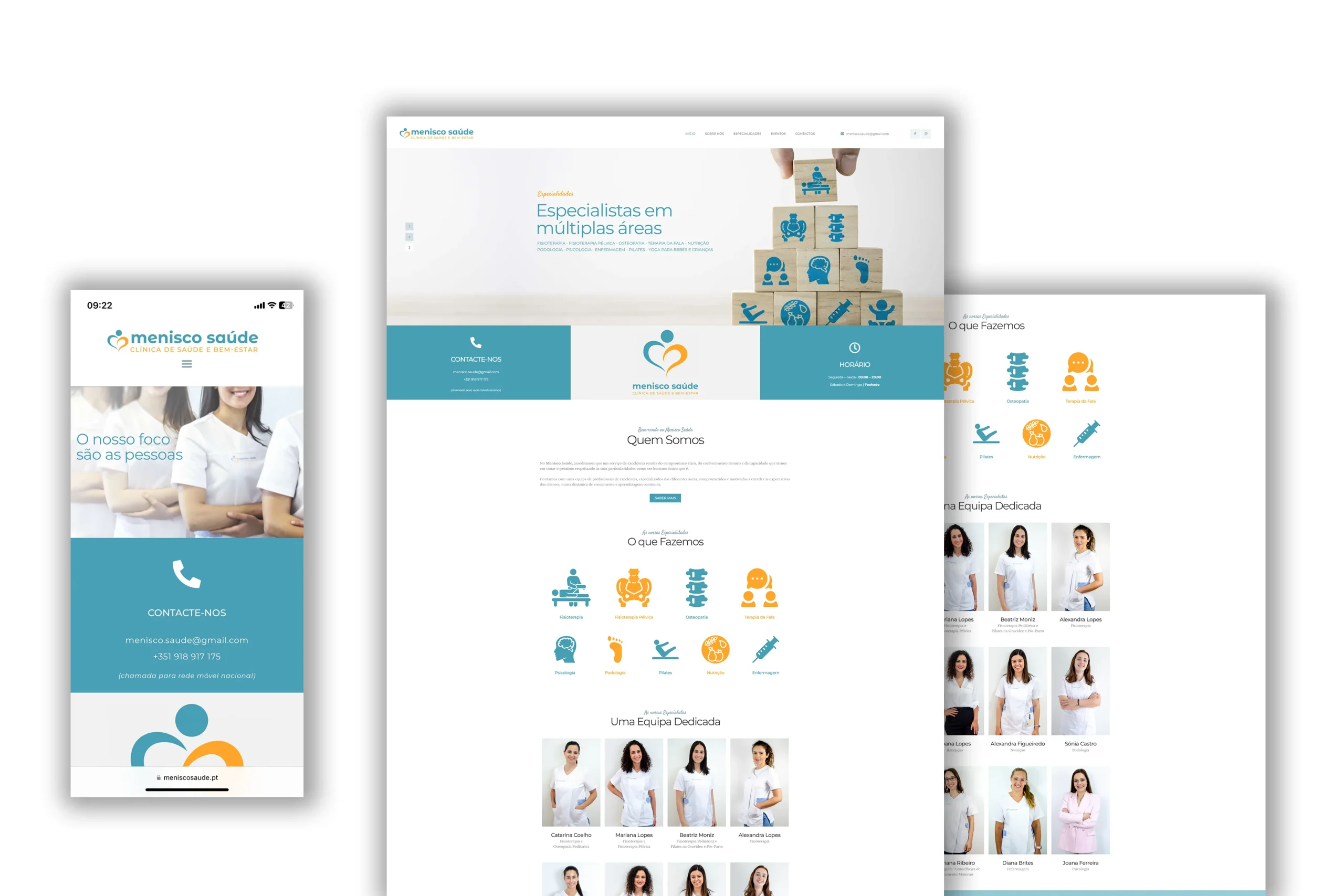 Menisco Saúde is a clinic focused on improving people’s quality of life, with a specialty in physiotherapy. One of the challenges was redesigning the company’s logo to incorporate concepts of care and essential values like health and well-being. As part of the rebranding, a new website was created from the ground up, along with professional photo sessions featuring the team — reinforcing the clinic’s visual identity and its commitment to patient care.