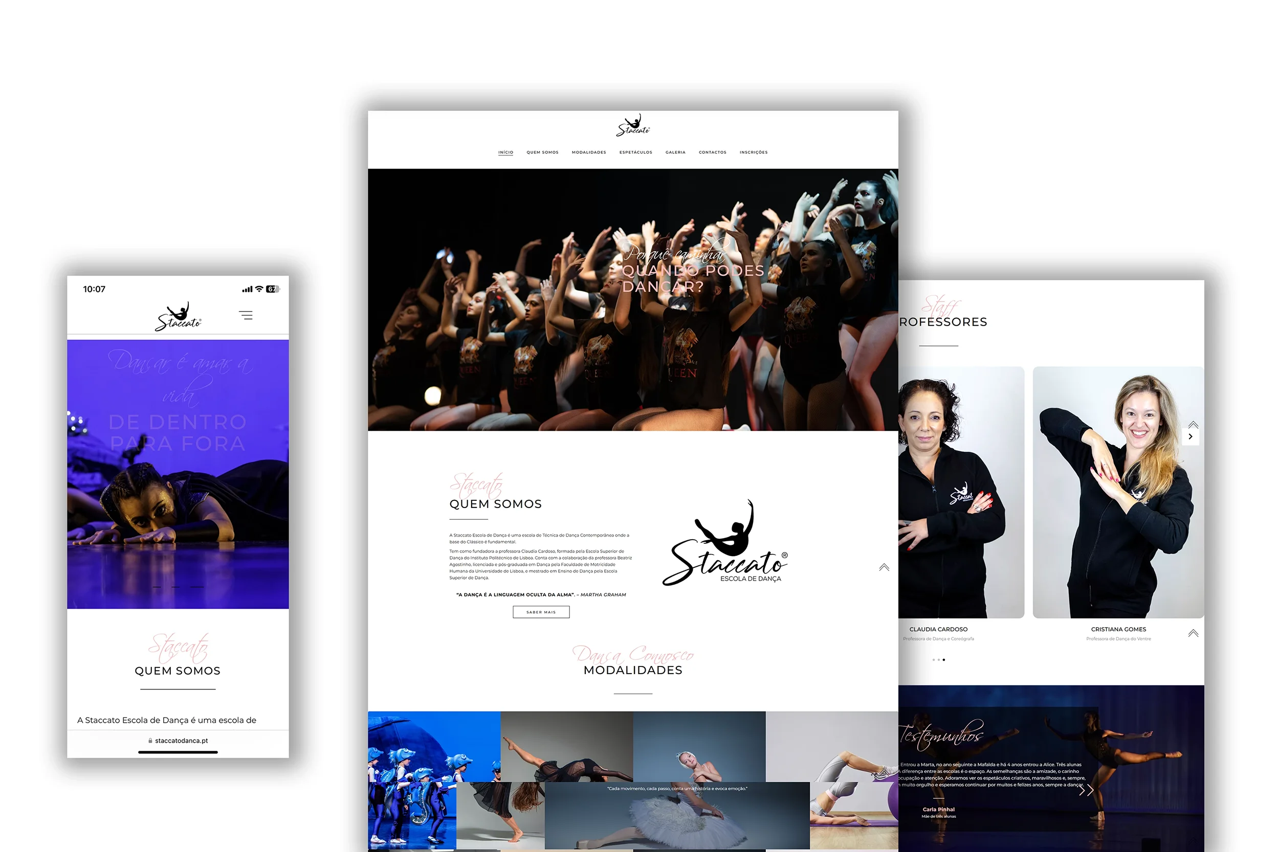 Staccato is a Contemporary Dance school. It trains and inspires students through body and artistic expression. We created a website that reflects the passion for dance and the variety of classes. We highlighted memorable performances and the experience of the teaching team. The design and photography capture the school’s energy. They reinforce its visual identity and commitment to the arts. They also celebrate each student’s personal growth.
